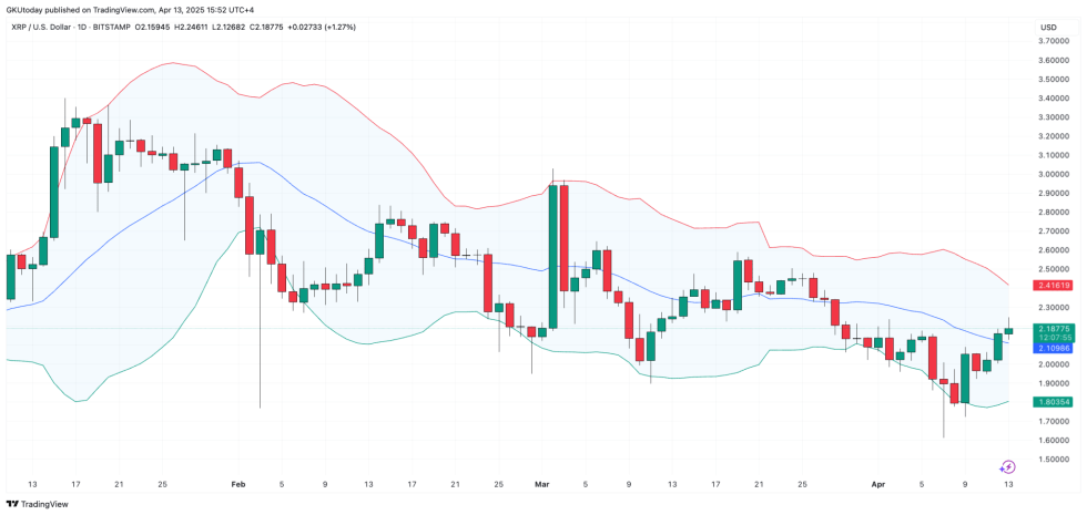 Il superamento della media centrale ha fatto seguito a una crescita del 20% in sette giorni, con un picco di 2,25 dollari e un consolidamento intorno ai 2,20 dollari. Secondo gli analisti, se questa pressione d’acquisto continuerà, XRP potrebbe raggiungere la banda superiore delle Bollinger, situata attualmente a 2,40 dollari.