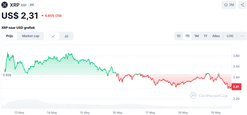Technisch gezien hadden traders van XRP diverse redenen om optimistisch te zijn. De coin brak recentelijk uit een lange falling wedge, wat een bullish ommekeer kan signaleren. Deze breakout stuurde XRP kort richting $2,60. Maar na deze opleving volgde een scherpe terugval, waarbij de prijs wederom zakte tot het huidige niveau rond $2,30.