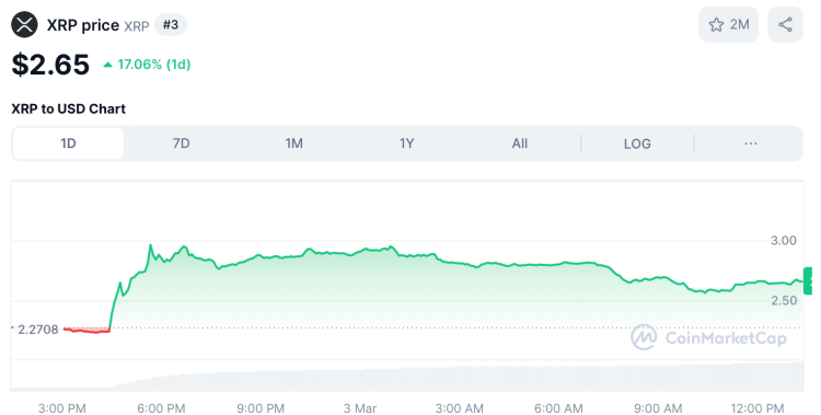 De Ripple koers heeft een flinke stijging gemaakt met een pump van 35% in slechts 24 uur tijd. Dit is te danken aan de aankondiging die Donald Trump deed over de oprichting van een crypto reserve.