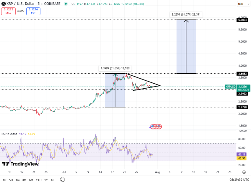 Hoewel de Ripple koers in de afgelopen week met 10% daalde, de stijging over de afgelopen 30 dagen gezien is nog steeds 42,5%. Retail investeerders hebben de afgelopen dagen geliquideerd om te kunnen profiteren van de hoge koers. De maand juli begon voor XRP op een waarde van $2,2728 en met een huidige waarde van $3,1296 heeft de crypto dus flink winst gemaakt.