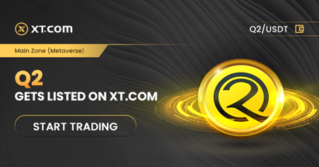 XT.COM has listed Q2 in the main Metaverse Zone and has opened trading for the Q2/USDT trading pair at 2022-09-27 02:00 (UTC).