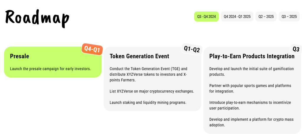 Unlike fleeting meme coins, $XYZ is built for the long haul. Its ambitious roadmap includes: