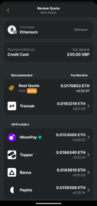 However, purchasing crypto does come with fees, especially when using a credit card, and some of these can be higher than on dedicated exchanges. However, these are not paid to Zengo but to third-party providers, and they are pretty standard with crypto wallets.